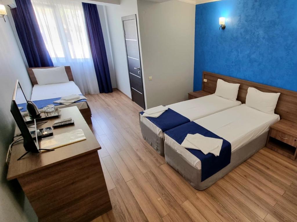 В отеле 32 номера, и каждый из них каждый оснащен кондиционером, сейфом и дверями с повышенным классом звукоизоляции. На рецепции круглосуточно находится администратор, всегда открытый для ваших вопросов и пожеланий. На территории отеля есть сушилка для горнолыжного снаряжения, открытый круглогодичный бассейн с подогревом и собственное кафе с достойной подачей блюд.